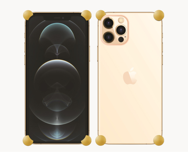 Original Minimalist Corners4 for iPhone 12 & 12 Pro/Max. Redesigned and engineered with front-facing cut-outs to allow a full view of the iPhone 12’s edge to edge screen… One set of 4 precision-machined aircraft-grade aluminum Corners with hard-anodized GOLD finish. Included: two 2 sets of engineered 3M adhesive strips, alcohol cleaning pad, 3M primer, and instructions.