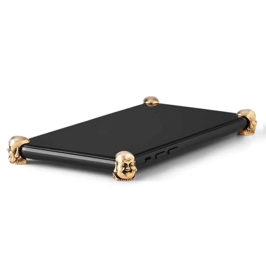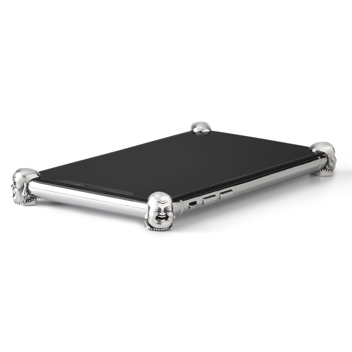 “HAPPY BUDDHA” ROSE GOLD ICONS for iPhoneX, Xs, Xs Max. 4 hand cast Buddha Corners4 ICONS..finished with hardened e-coat process plating. Included – 3 sets of 4 custom Corners4 adhesives, alcohol-cleaning pad and instructions.